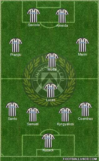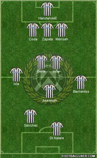 Handanovic · Pasquale · Zapata · Castro · Jagielka · Inler · Battocchio · Leon · Sanchez · Di Natale · Cavani