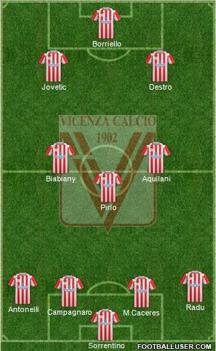 Sorrentino · M.Caceres · Campagnaro · Antonelli · Radu · Pirlo · Biabiany · Aquilani · Jovetic · Destro · Borriello