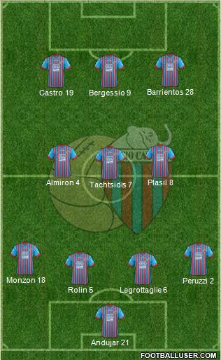 Andujar · Legrottaglie · Spolli · Biraghi · Alvarez · Plasil · Almiron · Castro · Barrientos · Leto · Bergessio