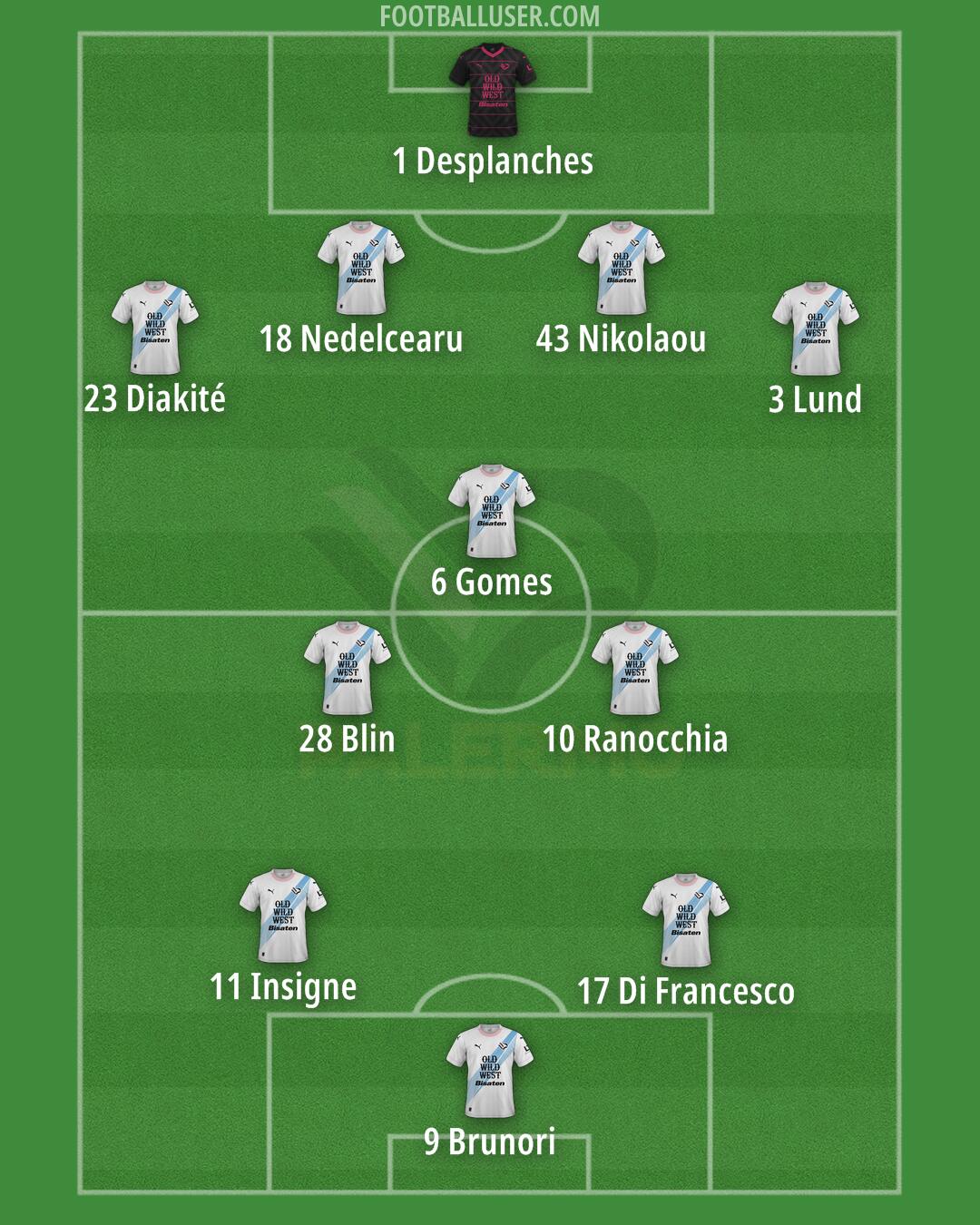 46 Sirigu · 27 Pierozzi · 6 Gomes · 4 Banya · 32 Ceccaroni · 8 Segre · 43 Nikolaou · 10 Ranocchia · 21 Le Douaron · 9 Brunori · 3 Lund