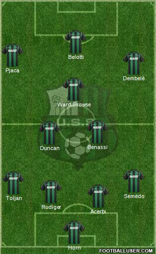 Consigli · Ferrari · Santos · Rogerio · Lirola · Locatelli · Sensi · Duncan · Di Francesco · Berardi · Boateng