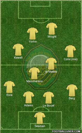 Seaman · Le Bouef · Adams · Berg · Evra · Mascherano · di Matteo · Cole (Joe) · Kewell · Yorke · Wright