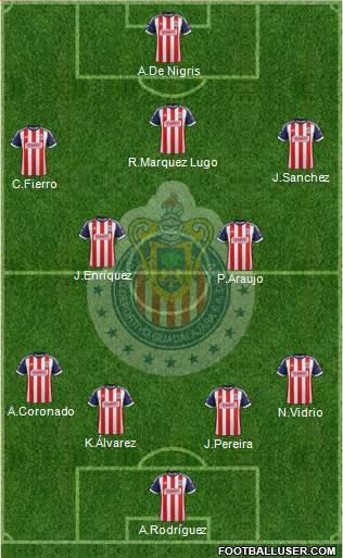 José Antonio Rodríguez · Jair Pereira · "Pato" Araujo · Kristian Álvarez · Gerardo Rodríguez · Néstor Vidrio · Israel Castro · "Chatón" Enríquez · Omar Bravo · Rafael Márquez Lugo · Aldo de Nigris