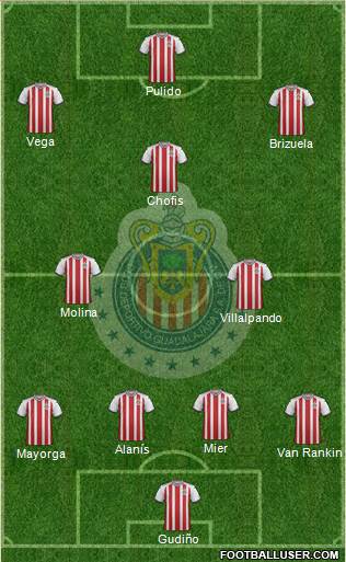 Gudiño · Alanis · Mier · Briseño · Van rankin · Ponce · Molina · Chofis · Vega · Brisuela · Pulido
