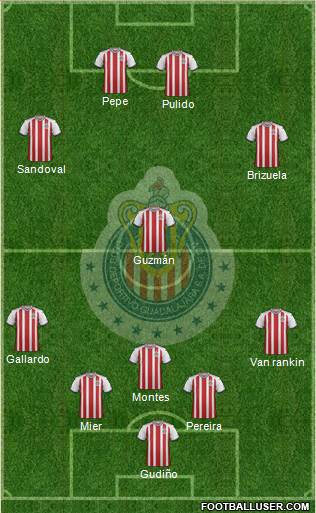 Raúl Gudiño · Briseño · Alanis · Ángulo · Van Rankin · Molina · Dieter · Brizuela · Sandoval · Chofis · Pulido