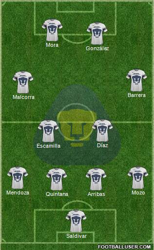 Saldívar · Fuentes · Moreno · Van Rankin · Gallardo · Juárez · De Buen · Cabrera · Cortés · P. Wayne · Herrera