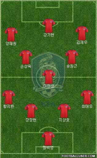 권순태 · 기성용 · 권경원 · 김민재 · 최철순 · 김민우 · 정운 · 이재성 · 권창훈 · 손흥민 · 황희찬