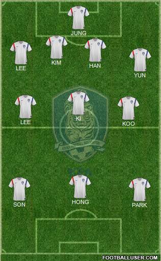 21 Sung Kyu Kim · 4 Joo Young Kim · 5 Jeong Ho Hong · 22 Du Ri Cha · 12 Jin Soo Kim · 16 Sung Yueng Ki · 15 Joo Ho Park · 10 Ja Cheol Koo · 17 Cheong Yong Lee · 7 Heung Min Son · 20 Dong Guk Lee