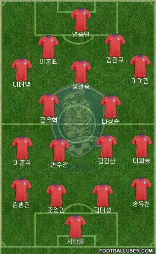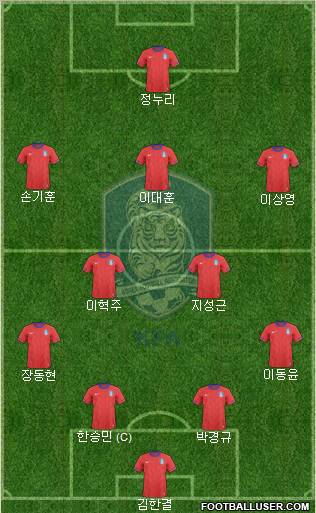 Sung-Ryong · Jung · Young-Kwon · Kim · Ju-Young · Kim · Bum-Suk · Oh · Suk-Yonug · Yoon · Sung-Yong · Ki · Ja-Chul · Koo · Chung-Yong · Lee · Ji-Sung · Park · Dong-Won · Ji · Heung-Min · Son