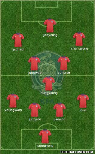 정성룡 · 곽태휘 · 이정수 · 박주호 · 고요한 · 기성용 · 하대성 · 이근호 · 김보경 · 이청용 · 이동국