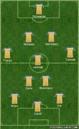 Thompson · Topor-Stanley · Bresciano · Cahill · Kennedy · Djite · D.Williams · Oar · Sarota · Holman · North(C) · Zullo · R.Williams · Neill · Ognenovski · Jones