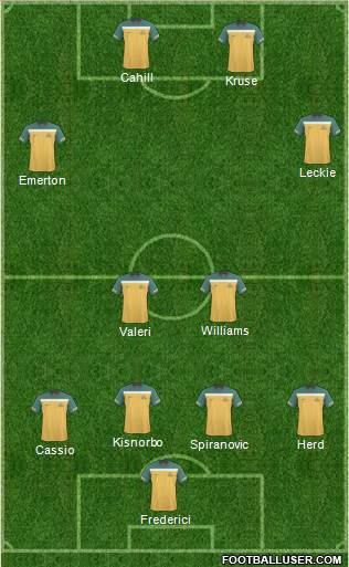 Schwartzer · Niel · Williams · Mckay · Wilkshere · Milligan · Cahill · Holman · Rogic · Kruse · Thompson