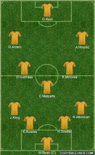 Kennedy · Cahill · Emerton · Bresciano · Culina · Valeri · Carney · Wilkshire · Neill (C) · Beauchamp · Schwarzer