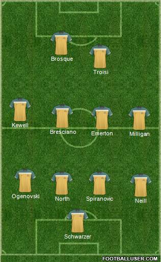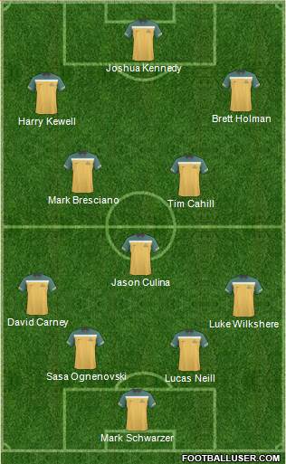 Schwarzer · McKain · Black · Wilkshire · Carney · Jedinak · Culina · Cahill · Kewell · Garcia · Kennedy