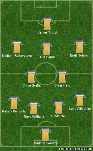 Langerak · Spiranovic · ognenovski · Niell · Wilkshire · R.Williams · Emerton · Cahill · Kewell · Kruse · Thompson