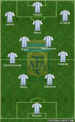 Martínez · Romero · Otamendi · Molina · Tagliafico · Paredes · Mac Allister · De Paul · Di María · Messi · Lautaro