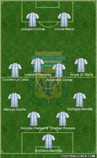 21. Bochini · 22. Moreno · 23. Caniggia · 17. Sívori · 18. Ardiles · 20. Simeone · 19. Ruggeri · 14. Mascherano · 13. Fillol · 15. Messi · 16. Di Stefano · 11. Kempes · 12. Goycochea · 10. Maradona · 9. Batistuta · 5. Redondo · 6. Passarella (c) · 7. Marzolini · 8. Zanetti · 4. Monti · 1. Carrizo · 2. Perfumo · 3. Tarantini