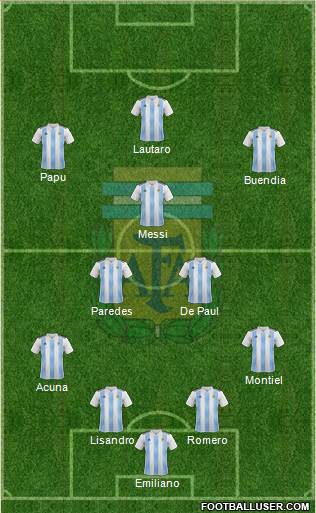 Lautaro · Messi · Dybala · Lo Celso · de Paul · Paredes · Molina · Tagliafico · Pezzella · Otamendi · Martínez