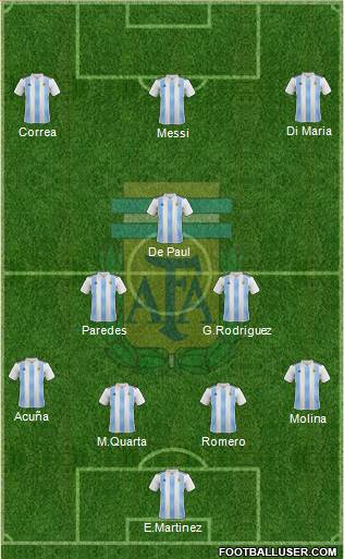 E. Martinez · L. Martinez · Romero · Acuña · Molina · Paredes · De Paul · Lo Celso · Messi · Di María · Lautaro Martínez