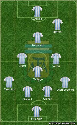 Crespo · Messi · Tevez · Riquelme · Mascherano · Cambiasso · Heinze · Zanetti · Samuel · Ayala · Abbondanzieri