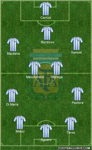 Romero · Garay · Burdisso · Zabaleta · Zanetti · Banega · Mascherano · Pastore · Messi · Aguero · Higuain