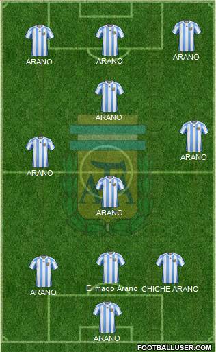 Romero · Milito · Burdisso · Zanetti · Rojo · Mascherano · Cambiasso · Pastore · Messi · Tevez · Higuain