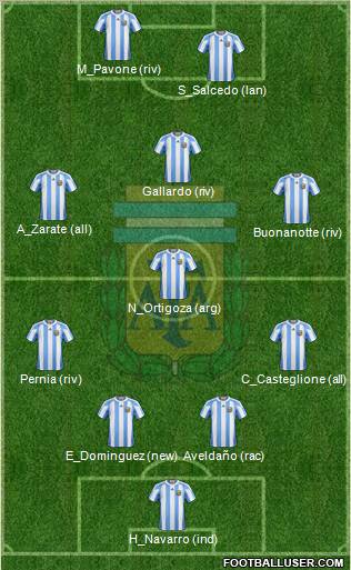 S. Romero · N. Pareja · N. Burdisso · J. Zanetti · P. Zabaleta · J. Mascherano · E. Banega · J. Pastore · L. Messi · A. Di Maria · S. Aguero