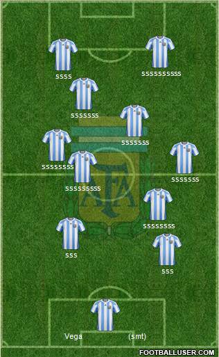 Romero · Heinze · G.Milito · C.Rodriguez · Zanetti · Mascherano · Di Maria · Pastore · Messi · Kun Aguero · Tevez