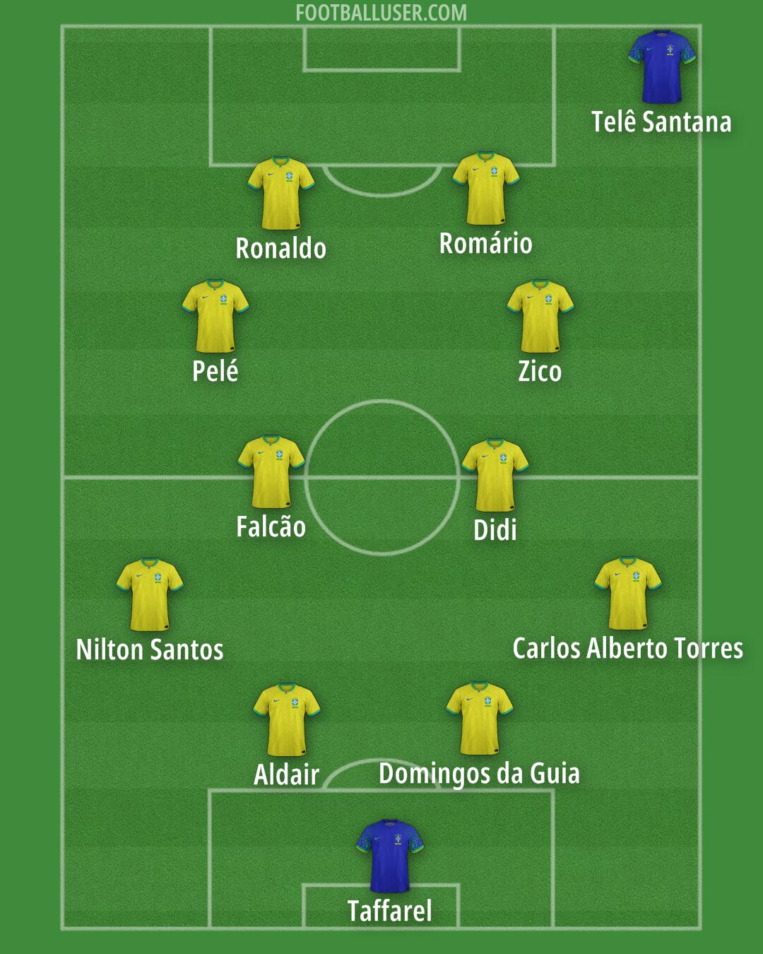 Alisson (89) · Cafu (91) · Carlos (90) · Alberto (91) · Lucio (89) · Guimares (85) · Ramires (86) · Zico (91) · Ronaldinho (93) · Pele (95) · Ronaldo (94)