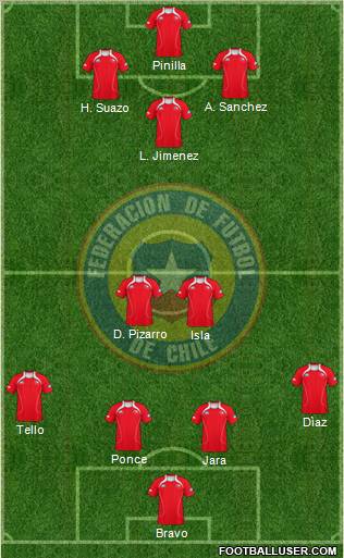 Bravo · Ponce · Jara · Contreras · Carmona · Vidal · Medel · Isla · Jimenez · Sanchez · Suazo