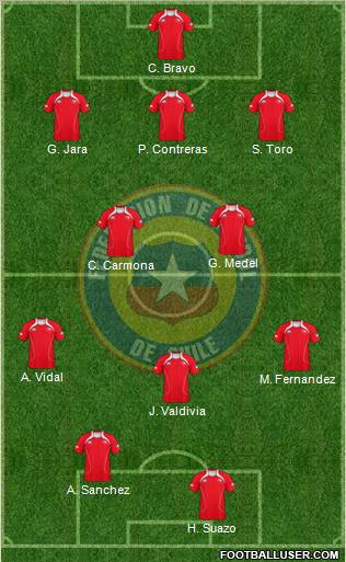 Bravo · Medel · Ponce · Isla · Campos Toro · Carmona · Pizarro · Valdivia · Beausejour · Sanchez · Suazo