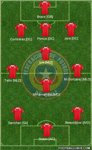 Bravo · Contreras · Ponce · Isla · Jara · Vidal · David Pizarro · Matias Fernandez · Alexis Sanchez · Mark Gonzalez · Pinilla