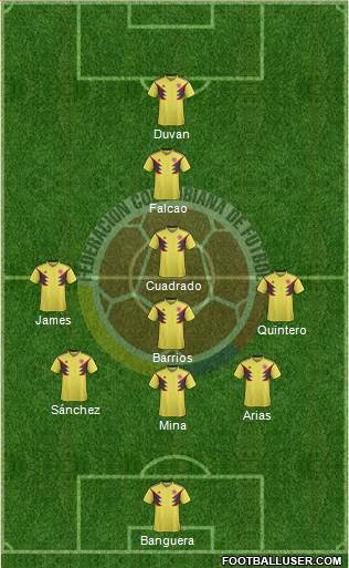 D. Ospina · D. Sanchez · Y. Mina · W. Tesillo · S. Medina · W. Barrios · Cuadrado · M. Uribe · L. Muriel · James · Falcao · D. Zapata · R. Martinez · L. Diaz · J. Lerma · Cardona · G. Cuellar · S. Arias · C. Borja · C. Zapata · J. Lucumi · A. Montero
