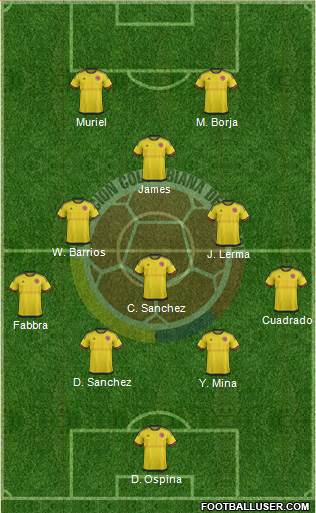 OSPINA · MINA · SANCHEZ · FABRA · ARIAS · BARRIOS · SANCHEZ · IZQUIERDO · JAMES · CUADRADO · FALCAO