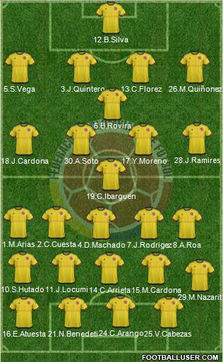 Ospina · J. Murillo · D. Sánchez · Zapata · C. Sánchez · D. Torres · Fabra · Arias · James · Muriel · Falcao