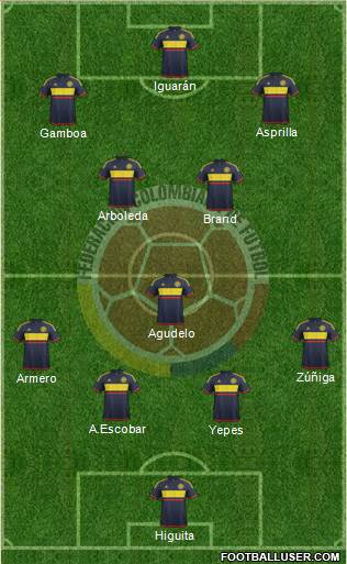 D.OSPINA · F.AGUILAR · J.MINA · F.DIAZ · S.ARIAS · C.SANCHEZ · M.URIBE · J.CUADRADO · J.RODRIGUEZ · M.BORJA · FALCAO