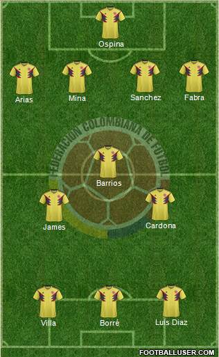 OSPINA · SANCHEZ · YERRY MINA · ARIAS · MOJICA · LERMA · BARRIOS · LUIS DIAZ · JAMES RODRIGUEZ · MURIEL · ZAPATA