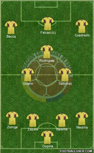 OSPINA · ARIAS · MINA · D. SANCHEZ · MOJICA · C. SANCHEZ · LERMA · J. RODRIGUEZ · QUINTERO · CUADRADO · FALCAO