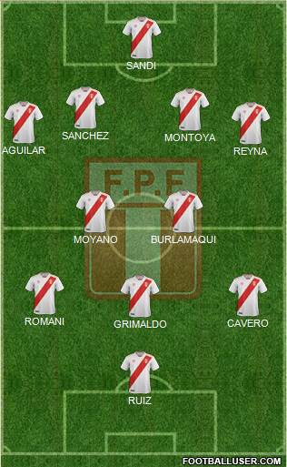 Gallese · Abram · Callens · Trauco · Advíncula · Tapia · Yotún · Cueva · Flores · Carrillo · Lapadula