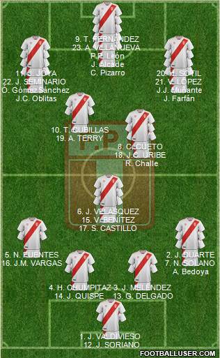 Fernandez · Ramos · Zambrano · Yotun · Advincula · Ballon · Lobaton · Cruzado · Vargas · Farfan · Pizzaro (c)