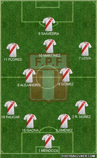 Gallese · Tapia · Zambrano · Trauco · Advincula · Yotún · Cueva · Carrillo · Benavente · Ruidíaz · Guerrero