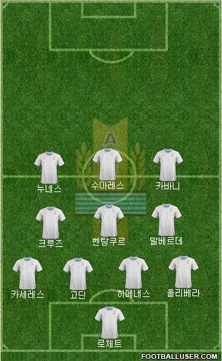 Muslera · Godín © · Giménez · Cáceres · Á. Pereira · González · Arévalo · Rodríguez · Lodeiro · Cavani · Suárez