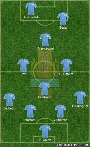 Santiago Martinez · Leandro Cabrera · Diego Godin · Jorge Fucile · Martin Cáceres · Álvaro Perreira · Lorenzo Durán · Luis Suárez · Cristian Rodríguez · Abel Hernández · Édinson Cavani