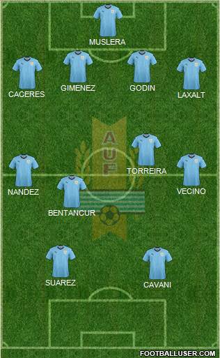 Muslera · Giménez · Godín · Mathías Olivera · Cáceres · Vecino · Bentancur · Valverde · Cavani · Stuani · Suárez