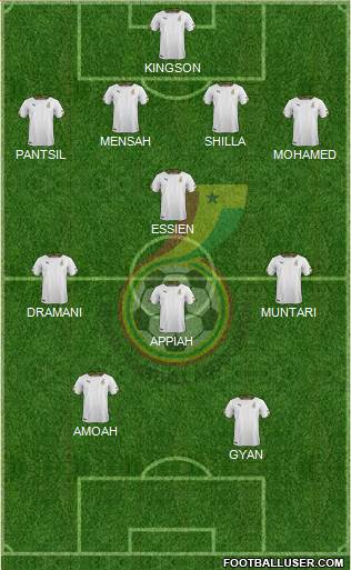 Kingson · Kuffour · Mensah · K.Asamoah · Paintsil · Appiah · Essien · Muntari · A.Pele · Yeboah · A.Gyan