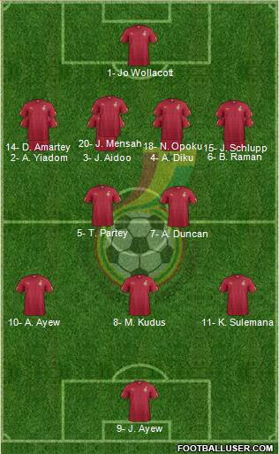 Nurudeen · Salisu · Amartey · Odoi · Asamoah · Partey · Sulemana · Kudus · Ayew · Ayew · Gyan