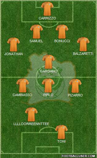 Copa · A. Boka · S. Bamba · B. Angoua · S. Aurier · C. Tiote · Y. Toure · D. Zokora · B. Anderson · S. Doumbia · D. Drogba