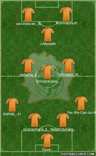Boubacar Barry · Arthur Boka · Emmanuel Eboue · Siaka Tiene · Kolo Toure · Cheik Ismael Tiote · Didier Zokora · Yaya Toure · Salomon Kalou · Didier Drogba · Gervinho