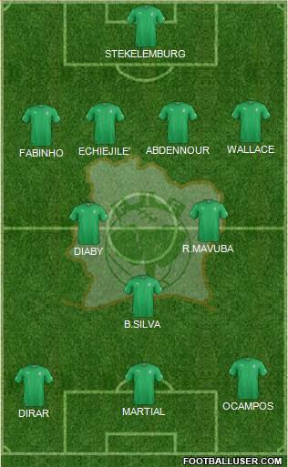 Copa · K.Touré · Aurier · Boka · Dja Djédjé · Tioté · Romaric · Y.TOuré · Gervinho · Gradel · Doumbia