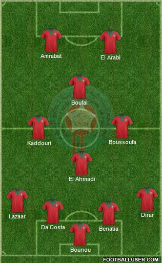 Munir · Da Costa · Benatia · Dirar · Lazaar · Kharja · Belhanda · Boussoufa · Amrabat · El Kaddouri · Hamd'Allah